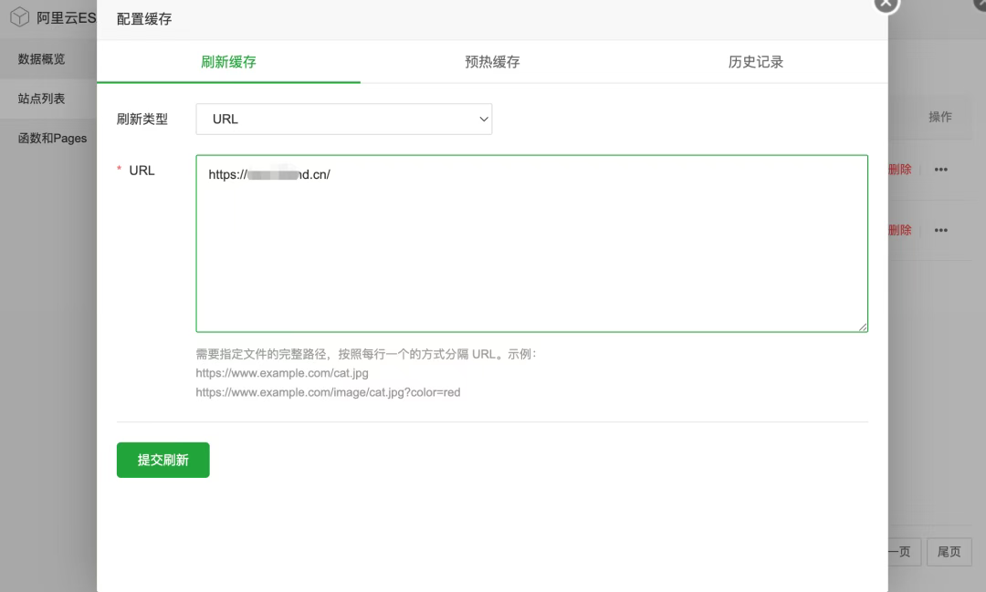 - 刷新缓存:支持带参数的完整URL、批量提交,逐条生效