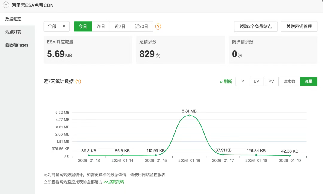 阿里云ESA提供长期免费套餐,依托全球3200+边缘节点,中国大陆节点全覆盖,让国内用户访问路径更短、延迟更低、稳定性拉满,对博客、内容站、小项目的访问体验提升立竿见影。