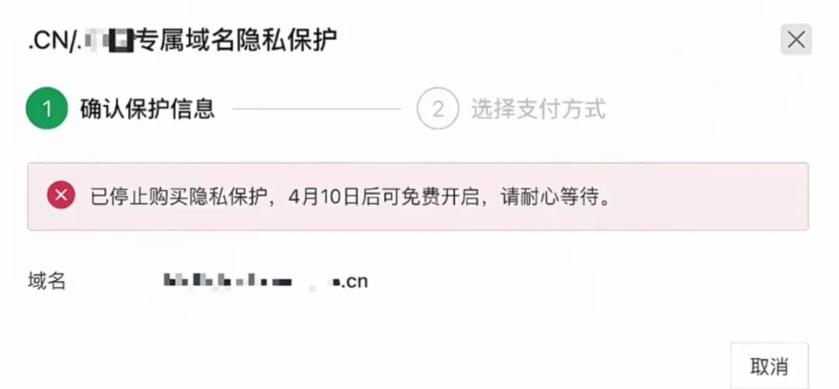 存量用户:4月10日后登录域名管理后台,通常可在“安全设置”或“隐私保护”栏目中免费开启。